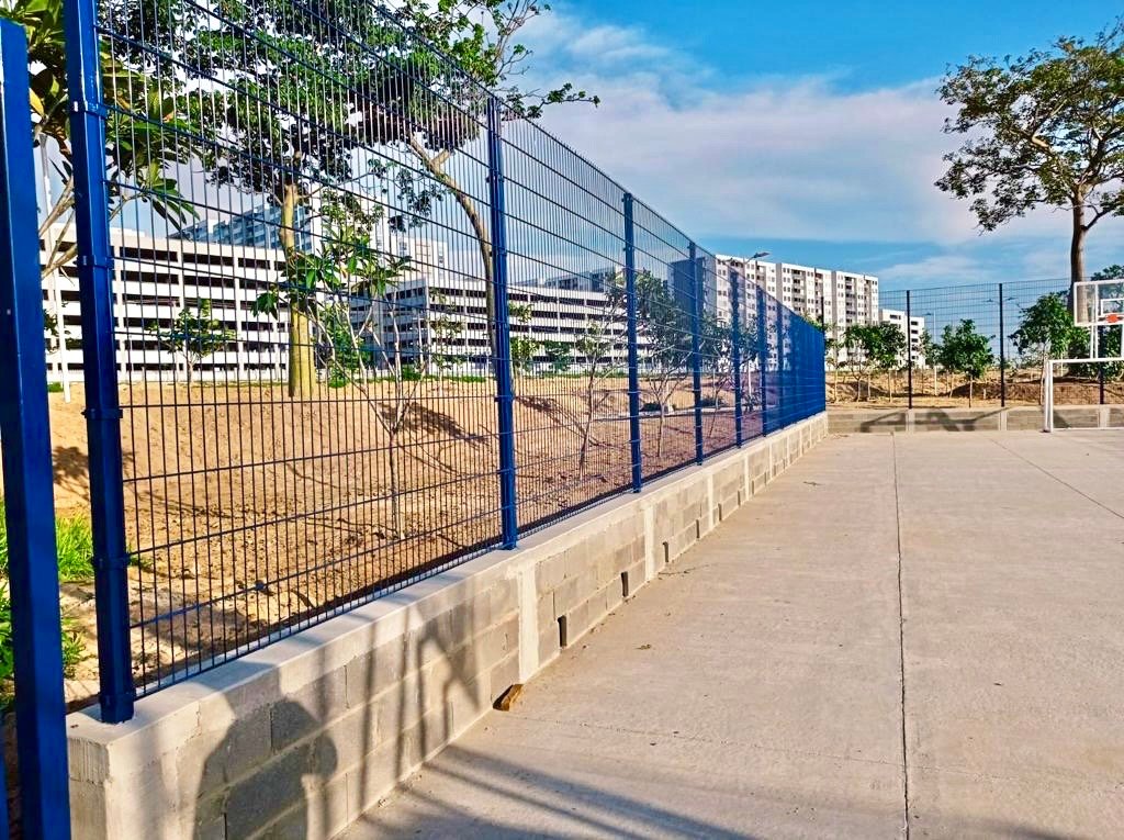 Solución de cierre perimetral modular de paneles electrosoldados fabricados con alambre Zinalpro + capa de Zirconio más recubrimiento de pintura en poliéster termo endurecido, lo que entrega una alta duración, estética y rápida instalación.