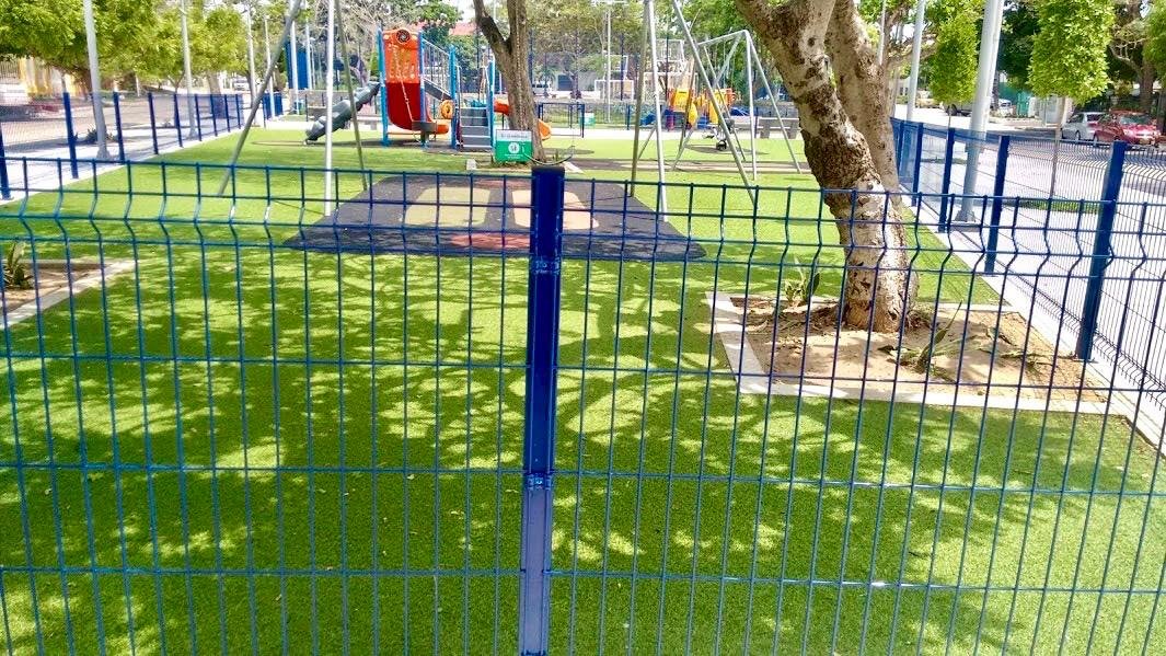 Solución de cierre perimetral modular de paneles electrosoldados fabricados con alambre Zinalpro + capa de Zirconio más recubrimiento de pintura en poliéster termo endurecido, lo que entrega una alta duración, estética y rápida instalación.
